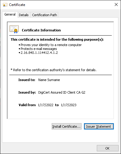 certificado DigiCert Client Premium?Para proteger correos electrónicos y firmar documentos.